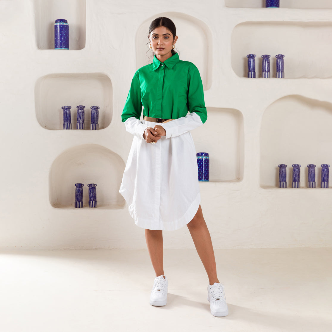 Step into the spotlight with our Chic Party Dress, a dazzling creation that effortlessly merges glamour with style. This eye-catching dress boasts hand-done stone work, meticulously placed around the armholes and cuffs, adding a touch of irresistible allure to your ensemble.